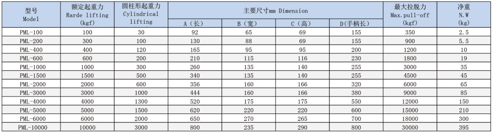 采用高性能磁性材料,使之體積更小,自重更輕,吸持強力。特殊的磁路設計,剩磁幾乎為零。安全系數(shù)高,最大拉脫力是額定起重力的3.5倍左右。手柄開關附有安全鈕,可單手操作,方便安全。起重器底面有“V”型槽設計,可起吊相對應的圓鋼、鋼板。不用電,磁力長久不衰,使用安全。可在野外作業(yè),廣泛用于鋼材的起吊搬運,平整的機械零部件,及各種磨具的安裝及搬運。
